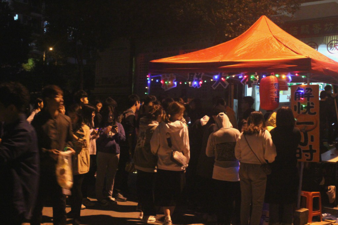 现场持续着解忧一小时活动,只见同学们纷纷带着写有自己困惑、忧愁的明信片交给社联人,希望解忧小天使能为他们解除烦恼。有趣的剪影屋吸引了许多同学前来观看。同学们积极询问参与的方法,大家都想在这美丽的剪影屋留下有爱的身影。ASI摄影协会在剪影屋隔壁进行摄影教学。工作人员手持单反相机,耐心地为同学们讲解摄影技巧,为同学们拍下创意十足的光绘照片。