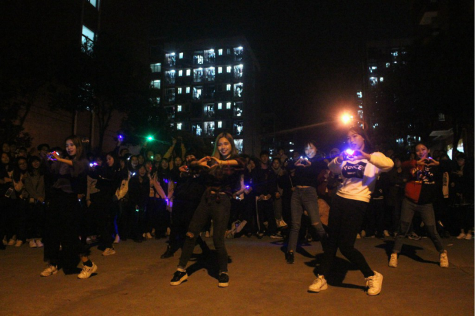 21:00,众所期待的公路表演开始。率先给同学们带来精彩表演的是HS66轮滑协会,他们以轮滑舞蹈作为开场秀,展示轮滑经典动作,引起现场一片欢呼,独舞表演更是点燃现场观众的热情。紧接着FM舞乐团用一首《告白气球》调和气氛,继而是B-box,最后FM舞乐团的舞蹈表演将现场气氛提升至最高点。表演结束,同学们久久不愿离开,只可惜快乐的时光总是过得那么快。