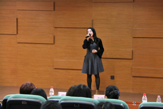 精心布置的会场充满朝气,优美的旋律回旋整个现场。思政部陈韬和乐见玲老师献上的《凉凉》拉开了活动帷幕,婉转歌曲与电视剧《三生三世十里桃花》煽情台词巧妙结合,激起了阵阵欢声笑语。外语系胡梦缘老师独唱的《风雨彩虹,铿锵玫瑰》,荡气回肠,将女性“半边天”的巾帼气质展现的淋漓尽致。