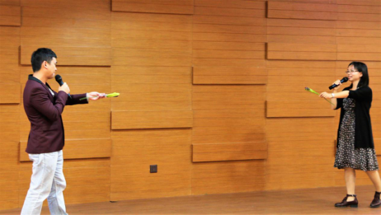诚邀的客串嘉宾的精彩表演更是将现场氛围推向了高潮。学生处帅气的李师老师吉他弹唱《当你老了》,如流水行云般美的旋律,时而美妙,时而忧伤。图书馆蔡美参老师的独舞《又见北风吹》展现了资深美女的风姿卓越,而文学院艺术系彭博娜老师演唱的《月亮花儿开》带我们进入听觉的享受,让大家再次领略了“金嗓子”的风采。