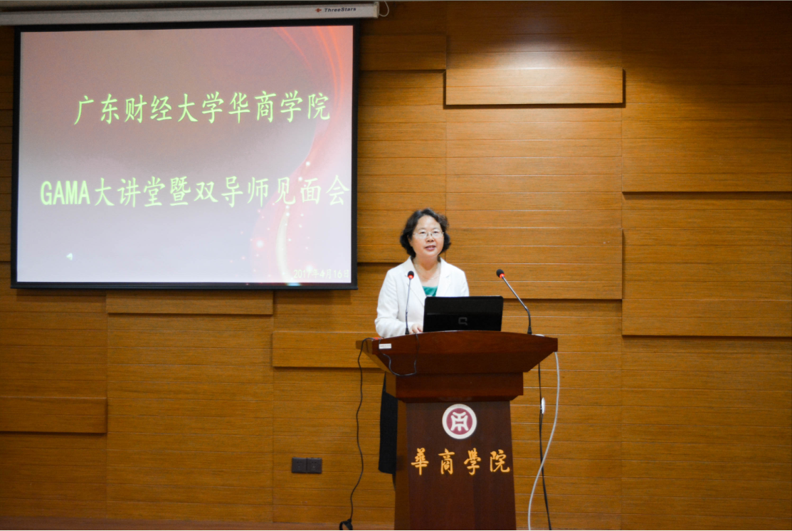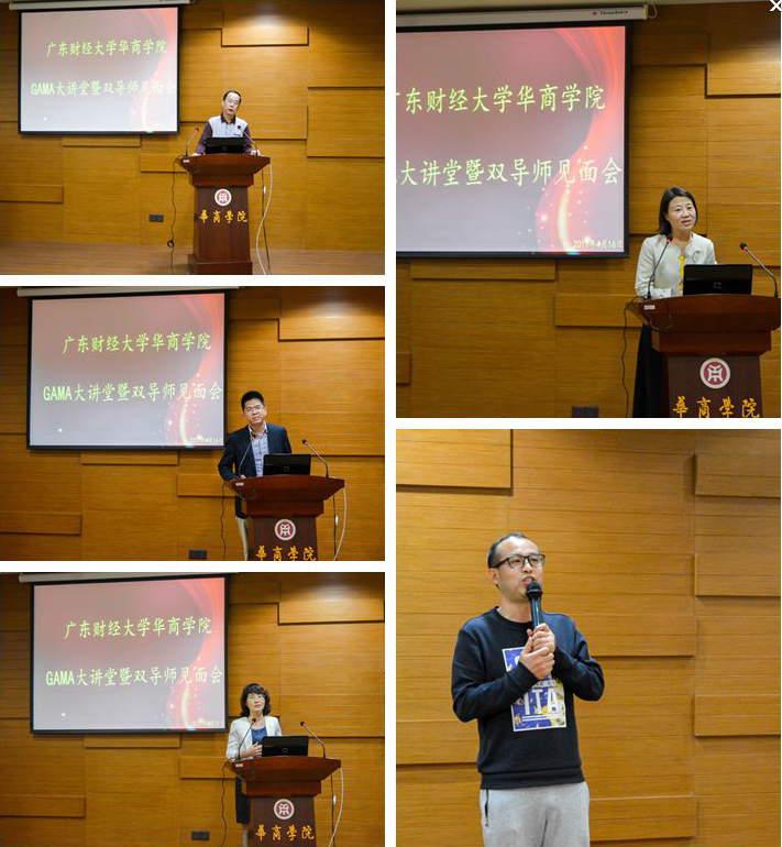 4月16日上午,广东财经大学华商学院GAMA大讲堂暨“双导师”见面会在图书馆报告厅隆重举行。2016级GAMA班实践导师陈福彬、付细军、高符生、葛芸、康淑敏、刘乐仁、王平、肖斌和学术导师蔡祥、胡玉明、林斌、刘善敏、漆江娜、王华、文芳、张程睿、刘中华等17位导师以及广东省管理会计师协会秘书处梁芳菲女士出席了本次活动。同时出席的还有华商学院副院长郭银华教授、马玉珍教授。活动由马玉珍教授主持。