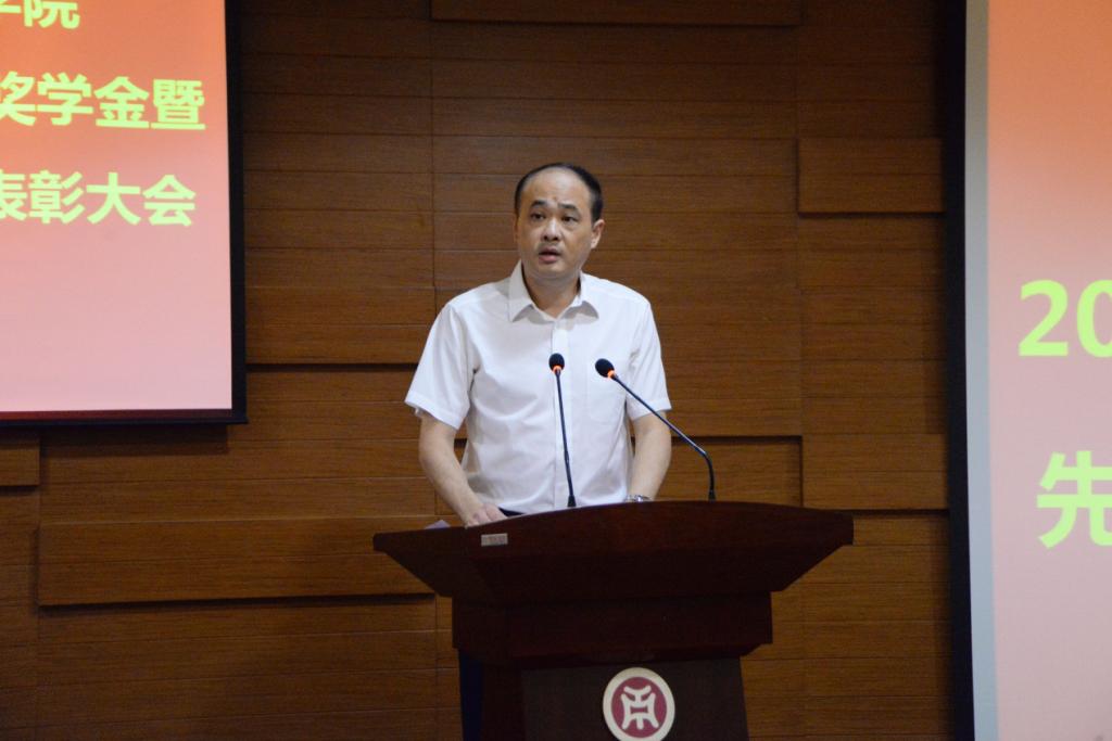 大会尾声,陈玉川院长作重要讲话。陈院长首先代表学院向受表彰的先进集体以及优秀学生表示热烈的祝贺,并向他们提出以下两点要求:第一是希望本次获奖的同学们应该明确自身的责任,要学会关注国家、社会与他人,做到“立足于本身,服务大家”,以身作则,严格要求自己,做好榜样,为华商优良校风建设担起责任来。第二是希望他们能够将知识转化为能力。同学们要注重自身技能及团队精神的培养,积极参与各项校内比赛和社会活动,真正成为有知识、有能力、服务社会的人才。