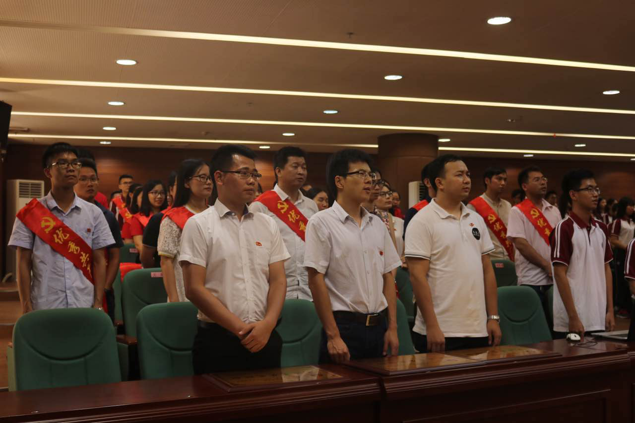 在激昂豪迈的国歌旋律中,大会拉开帷幕,主持人依次介绍了与会的领导嘉宾,宣读表彰文件,大会进入颁奖议程,本次大会表彰了8名优秀党务工作者,16名年度优秀共产党员,以及多名优秀学生党员。获奖的优秀党员依次上台领奖,在激动人心的颁奖仪式过后,新党员宣读入党誓词,在场的师生党员们重温入党誓词。