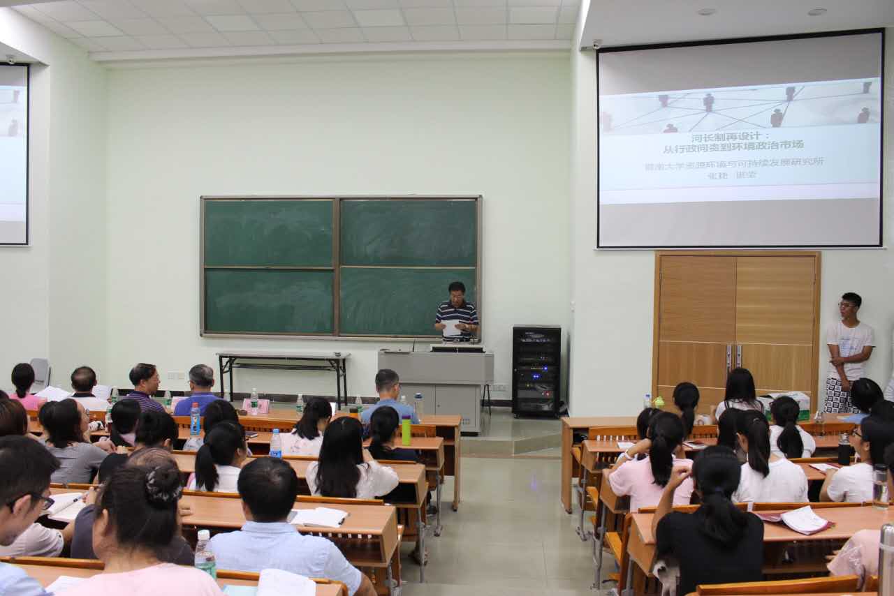 张捷教授以如何构思、布局、写作一篇论文为目的,以河长制再设计论文写作过程为例子,讲述了学术文章写作的注意事项及技巧,同时带领老师同学们探讨了从多方面探讨了当前我国河流环境问题。