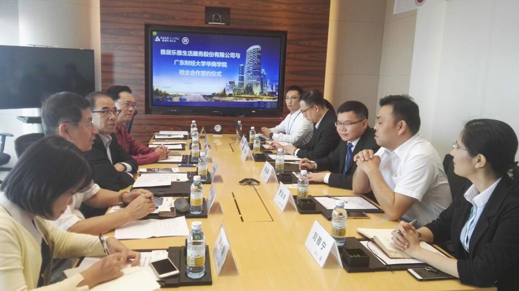 2017年10月25日上午,我们与雅居乐雅生活集团联合举办了校企合作协议签约会议。参加会议人员有华商学院郭银华副院长、教务处源国伟处长、经管学院平海副院长、王海燕主任、工商系潘思媚主任、实践科陈宏敏科长及雅生活集团人力行政中心李昌阳副总经理、雅卓营销公司张健强总经理、物业公司曾勇华副总经理、雅卓营销公司李月华人力行政部总监、人力行政中心刘雅宁资深经理。