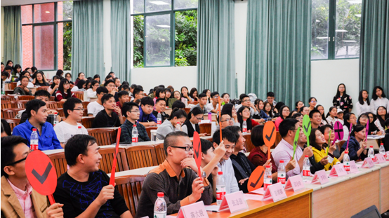 在第一个环节中,为公平起见,各参赛队伍可以从八组题中选择一组进行回答。各参赛队伍各显神通,努力争取回答快速、精确。精彩的答题,令在座的嘉宾评委和同学们都为之鼓掌。