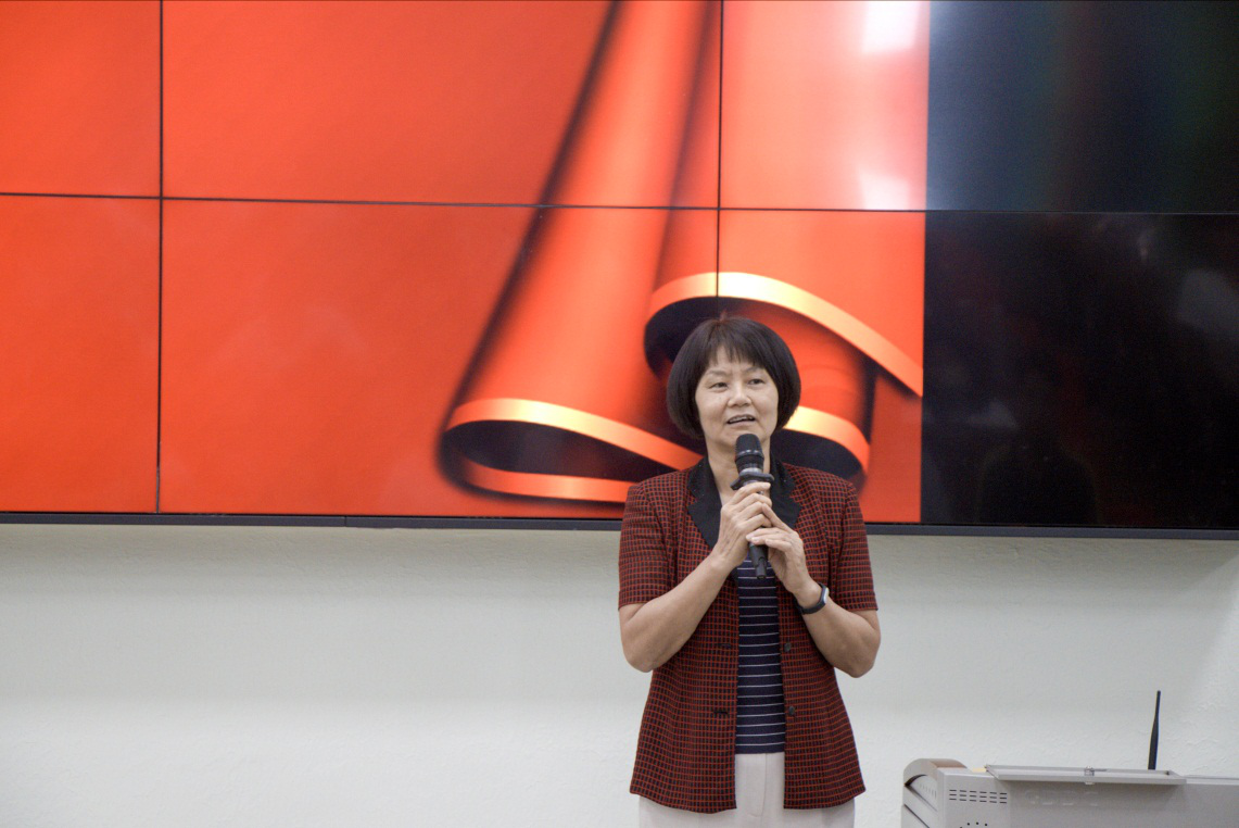 文学院艺术与设计系彭博娜副主任作交流发言。她用PPT详细展示了艺术与设计系在教育月开展的各项活动和取得的成效,认真地总结了本次活动的经验和不足。她表示文明、安全、纪律方面的工作还需要常抓不懈。