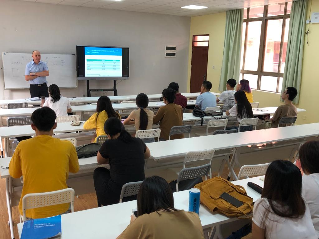 3日-6日,Dr.Best给英语专业、国际商务专业“3+1”中英学分互认国际班的学生进行了为期四天的授课。他注重课堂互动,不断鼓励同学们用英语去表达自己的观点,课上课后都耐心解答同学们的疑惑,课堂气氛活跃,深受同学们的欢迎。