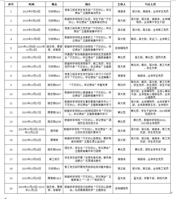为进一步推进我校基层党支部主题教育工作的开展,2019年11月1日上午,校党委苏宁书记来到数据科学学院调研,了解我们党总支、教工党支部和学生党支部关于主题教育开展情况。