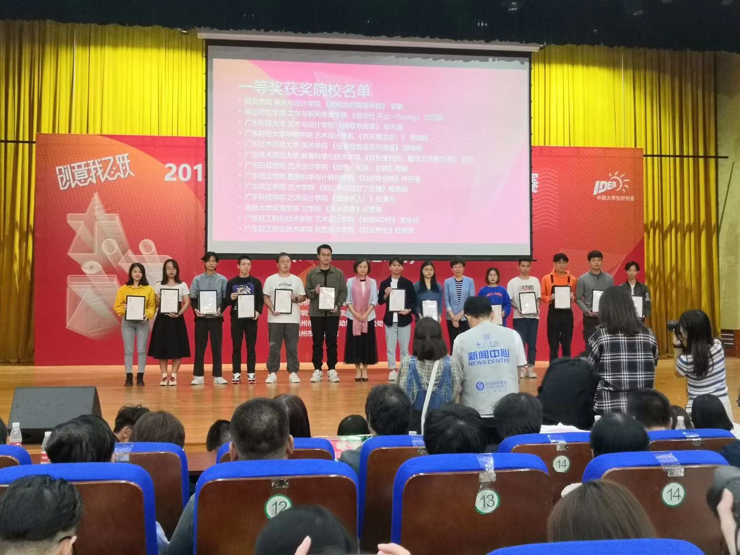 本次大广赛,文学院院2016、2017、2018级视觉传达设计、产品设计、动画、广告学等专业在激烈的竞赛中一共斩获省级60个奖项,其中一等奖10项,二等奖22项,三等奖28项。其中获得一等奖的同学有叶沃明、李岱蔚、赖岚滨、谢银月、魏琼、马相乐、李渊铭、叶卓颖、魏国安、庄美丹、吕海美、林佳东、梁力、邱振楠、梁恩瑜等同学,另外我们李明、湛素丹、富缨淇、陆春连、李红妮、黄功翔、袁凤、董业子等8位老师在本届比赛中获得优秀指导老师称号,以及广东财经大学华商学院荣获“优秀组织奖”称号。