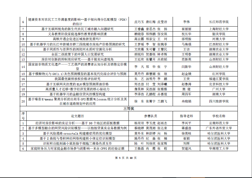 附全国统计建模大赛统计建模类--本科生组获奖名单