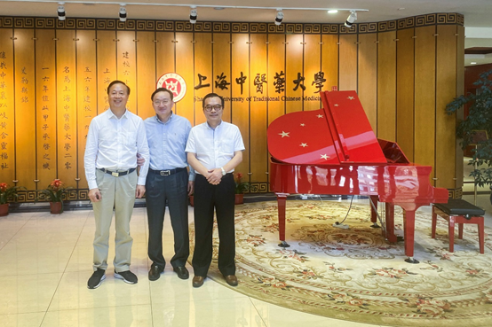 上海中医药大学中药伟德体育领导与廖榕就董事长(左一)合影留念