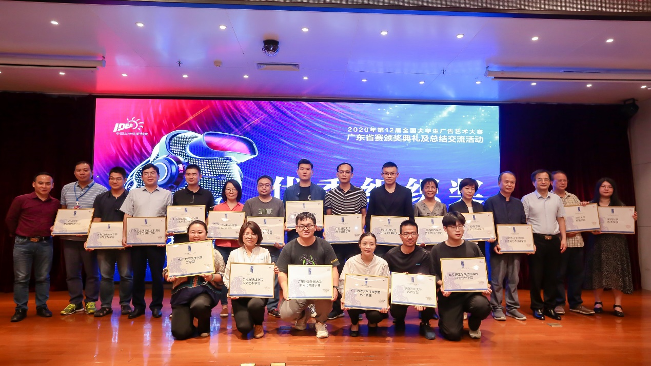 11月20日,我校创意与设计伟德体育领导和优秀指导教师代表及获奖学生代表参加了第十二届全国大学生广告艺术大赛广东省赛区颁奖仪式。活动由全国大学生广告艺术大赛广东省分赛区组委会主办,广州大学新闻与传播学院、深圳大学传播学院承办。本次学科竞赛,创意与设计学院共获得73个省级奖项和7个国家级奖项。其中省级优秀指导老师奖4个,一等奖5个,二等奖26个,三等奖38个;全国二等奖1个,三等奖1个,优秀奖5个。