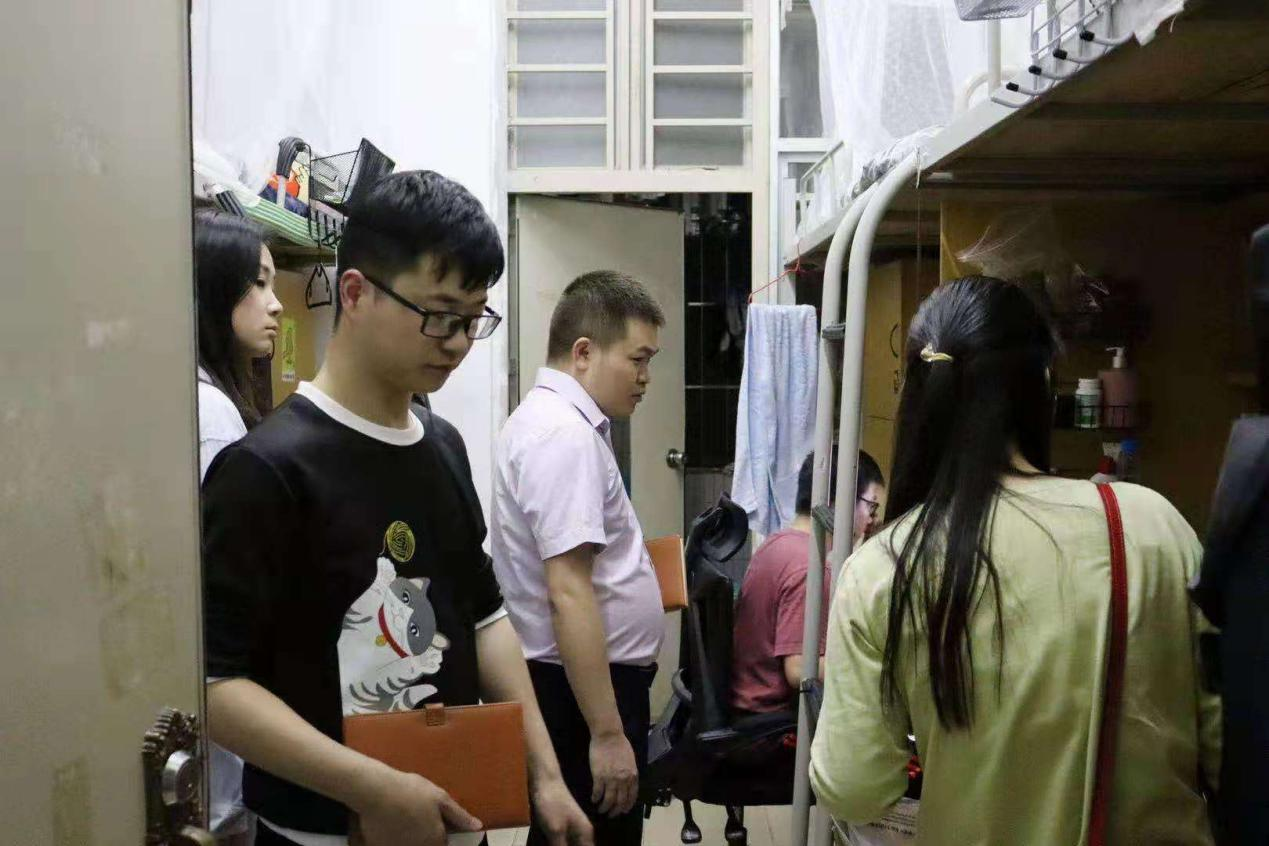 为规范广大学生的言行举止、增强纪律观念和安全防范意识,帮助同学们养成良好的学习和行为习惯,形成良好的学风、班风,营造文明和谐的宿舍环境,传播与传媒学院全体辅导员在学工办副主任谢清明老师的带队下展开一系列深入学生课室、宿舍的检查走访活动。