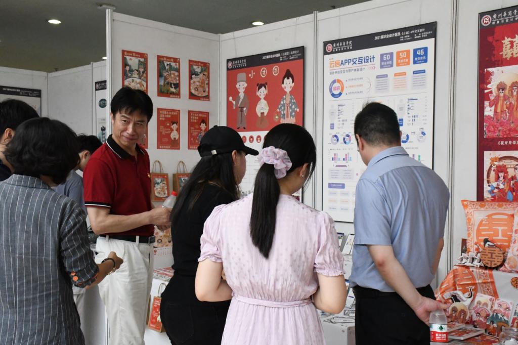 开幕式结束后,参展人员有序进入展览现场参观。作品设计者向业界人士及参观师生介绍设计理念并解答疑问,现场气氛热烈融洽。