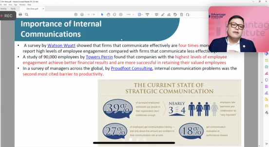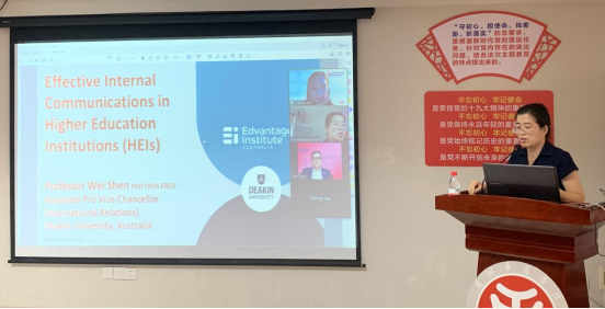支戈壁副校长指出董事会与学校高度重视教职工职业发展与技能提升,责成相关部门联手华商教育集团海外院校推出系列培训及学术讲座。她指出行政管理人员是学校发展进程的关键环节,行政管理人员也是连接老师和学生的重要桥梁和纽带,行政管理人员的沟通能力是能力提升的重要一环。她希望全体教职工珍惜每次讲座及培训机会,认真学习。