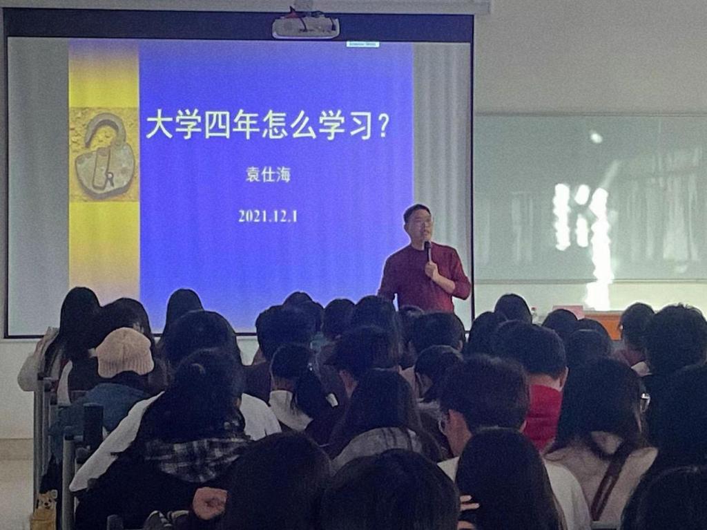 在同学们热烈的掌声下,袁主任围绕“大学四年,如何学习”的主题,对新生提出疑问:“大学四年怎么学习?”这一问题引发同学们的深思。