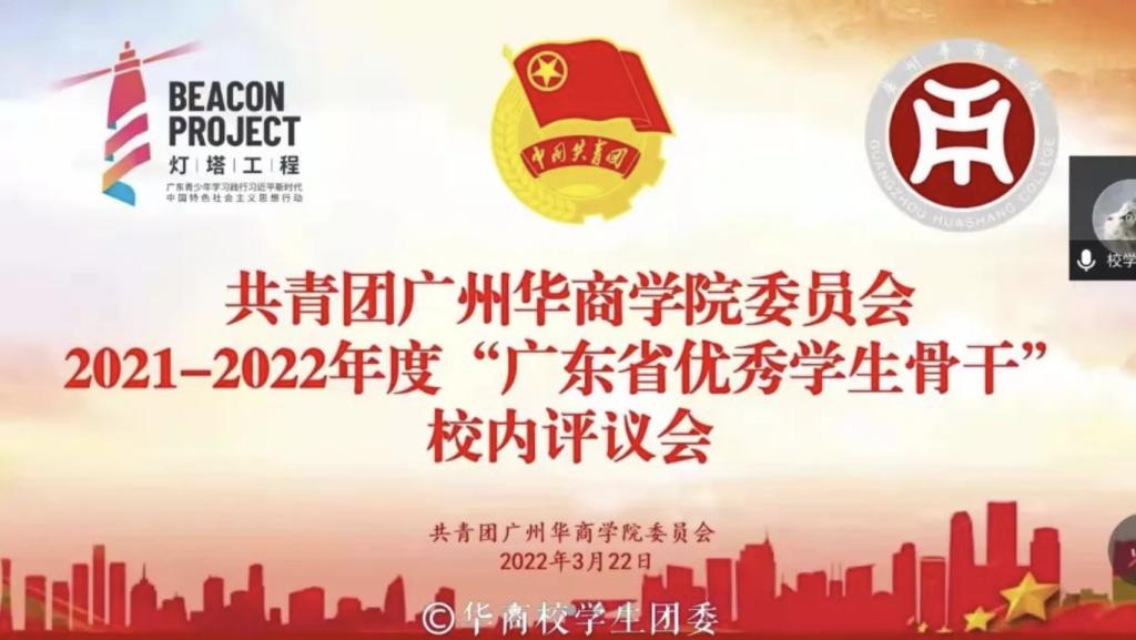 为深入学习贯彻习近平总书记关于青年工作的重要思想、持续深化落实学联学生会组织改革要求,建设富有理想、关心同学、清新阳光的团学组织形象,伟德体育2021-2022年度“广东省优秀学生骨干”校内评议会于2022年3月22日15:30在腾讯会议顺利举行。树立先进榜样,以此团结引导全校各级学生组织和青年学子,努力为华商学子实现习近平总书记赋予的使命任务奉献青春力量,以优异成绩迎接党的二十大胜利召开。