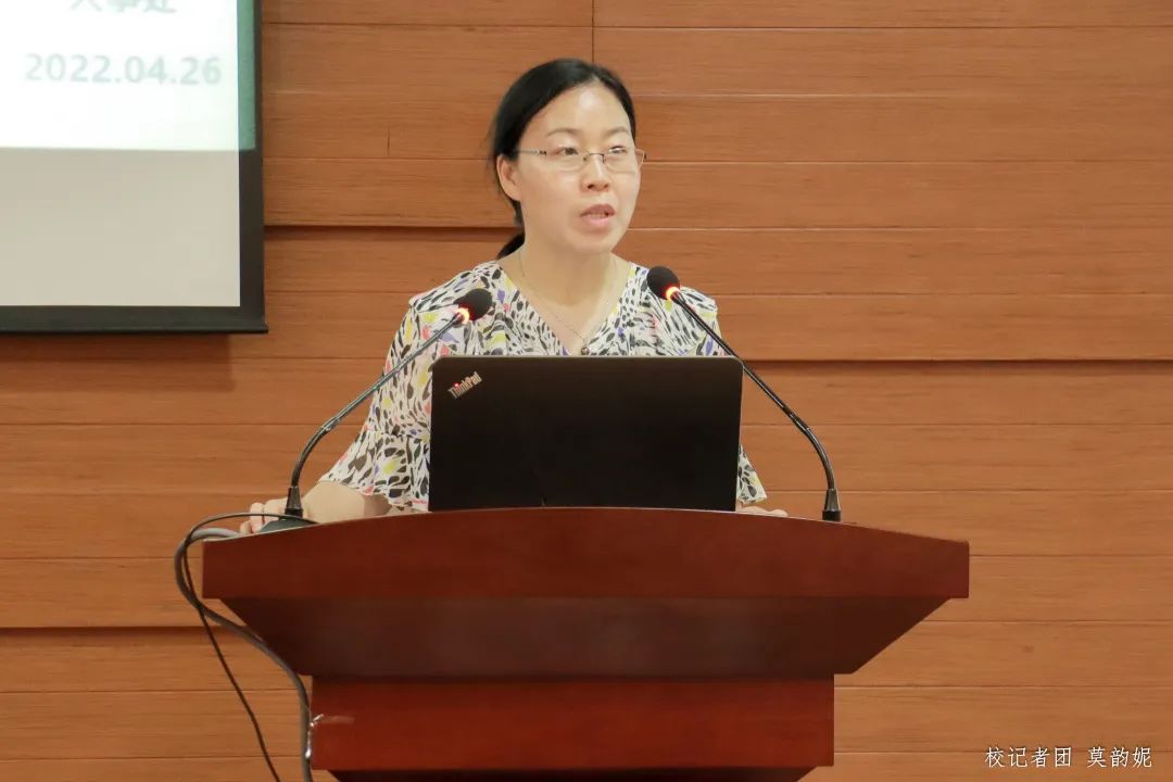 在大会发言环节,来自我校职称审核工作小组的旷美容、黄静萍、孔海兰三位代表详细讲解了2021年职称申报材料的填写要求及注意事项,包括申报表推荐表的填写、如何界定科研教研情况及指导学生参加社会实践等内容,帮助职称申报的教师进一步明晰申报要求,规范申报材料的填写,凝心聚力为顺利完成职称评审工作做充足的准备。
