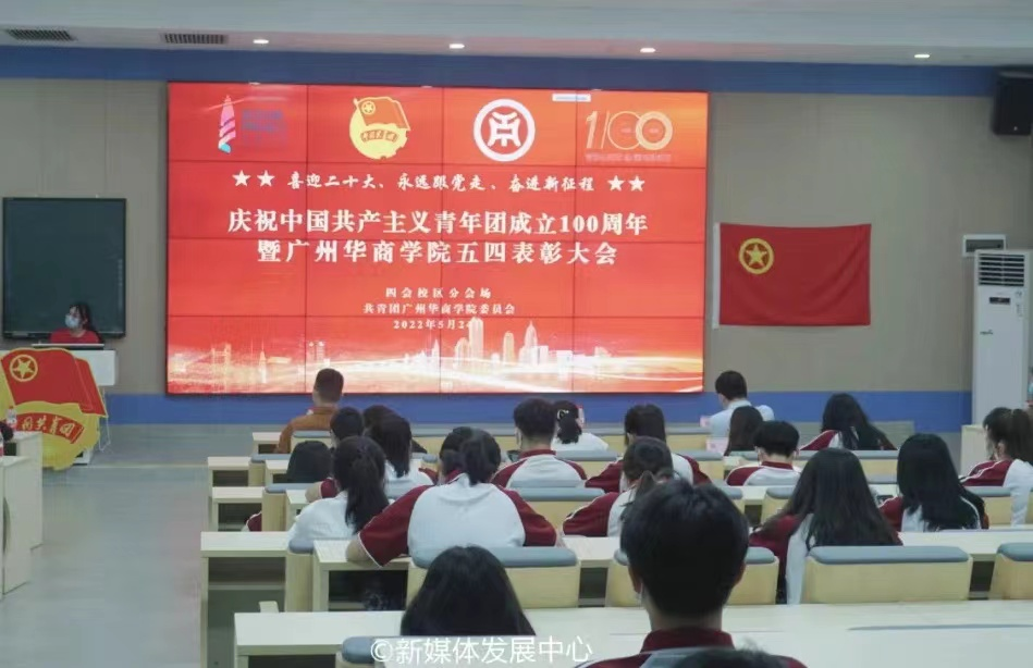 为深入学习宣传贯彻习近平总书记在庆祝中国共产主义青年团成立100周年大会上的重要讲话精神,引导广大华商青年争做理想远大、信念坚定、刻苦学习、锐意创新、敢于斗争、善于斗争、艰苦奋斗、无私奉献、崇德向善、严守纪律的模范,以更加昂扬进取的精神面貌为党的二十大胜利召开献礼,推动共青团思想引领取得更加扎实的工作成效,5月24日中午,校团委在国际会议中心四楼报告厅举行“喜迎二十大 永远跟党走 奋进新征程”伟德体育庆祝中国共产主义青年团成立100周年大会暨2022年五四表彰大会。根据校园疫情防控常态化要求,本次大会设立增城校区主会场,四会校区分会场。采用线上线下结合方式,同步进行网络直播,供华商师生观看学习。