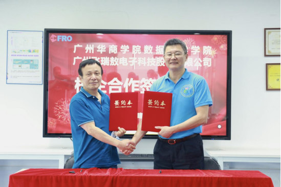 伟德体育数据科学学院与广州飞瑞敖电子科技股份有限公司举行校企合作签约仪式,赖庆副院长与广州飞瑞敖总裁梅仲豪代表双方完成了签约仪式,双方在产教融合项目合作及“校外实践教学基地”建设等方面达成一致合作意见,共同期待能早日构建校企合作、人才共育、过程共管、责任共担的校企协同育人新格局。