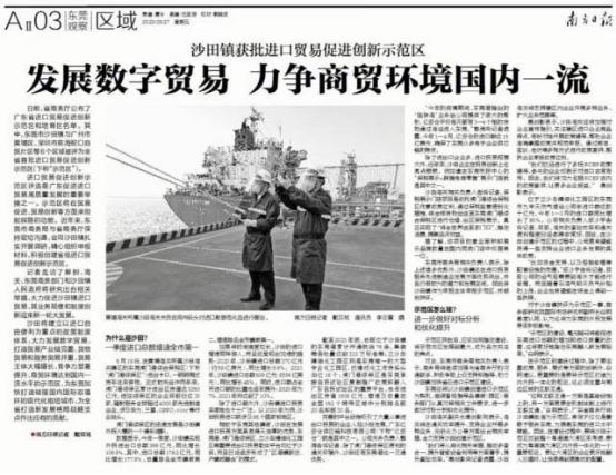 日前,省商务厅公布了广东省进口贸易促进创新示范区和培育区名单。东莞市沙田镇与广州市黄埔区、深圳市前海蛇口自贸片区等6个区域被评为全省首批进口贸易促进创新示范区(下称“示范区”)。其中东莞市沙田镇进口贸易促进创新示范区相关申报工作由伟德体育与沙田镇政府共同合作完成,示范区一经获批,便受到了“南方日报”等媒体的关注报道。