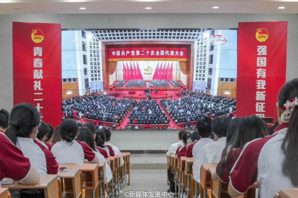 10月16日上午10时,中国共产党第二十次全国代表大会在北京人民大会堂开幕,习近平总书记代表第十九届中央委员会向大会作报告。这举世瞩目的盛会牵动着广大华商学子的心。我校团委组织各二级学院团总支书记、学生会指导老师、团学学生骨干、青马班学员、团支书以及团员青年代表分别在增城校区励志楼C408和四会校区8号楼108、6号楼201教室集中收看中国共产党第二十次全国代表大会开幕会,认真聆听学习习近平总书记代表第十九届中央委员会向党的二十大所作的报告。同时,各二级学院团总支组织学生骨干集中收听收看,广大华商学子积极主动进行线上线下学习。