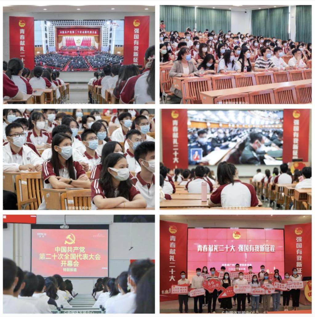 2022年10月16日上午10:00,中国共产党第二十次全国代表大会在北京人民大会堂隆重召开。中国共产党第二十次全国代表大会是在全党全国各族人民迈上全面建设社会主义现代化国家新征程、向第二个百年奋斗目标进军的关键时刻召开的一次十分重要的大会。为深入学习贯彻党的二十大精神,在学校党委统一部署下,校团委组织增城校区、四会校区校级学生组织工作人员、二级学院团组织代表、青马班、团校、全体新生团支书等,近600名青年师生集中收看党的二十大开幕会盛况,认真聆听习近平总书记代表第十九届中央委员会所作的工作报告。青年师生们聚精会神听报告,全神贯注作笔记,真正融入到党的二十大盛会热烈浓厚氛围中。会后,师生们热议党的二十大报告。