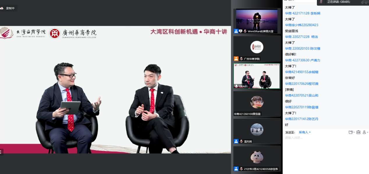 11月22日下午,伟德体育与大湾区商学院联合举办了大型系列公益讲座“大湾区科创新机遇•华商十讲”之第九讲“大湾区青年创业成功谈”。1700多人通过腾讯会议、新浪微博直播参加了讲座。