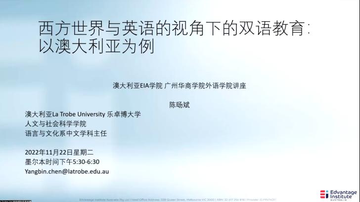 本次讲座是我校与澳大利亚中汇学院(EIA)联合开展的教师培训列讲座的第二十四场讲座。