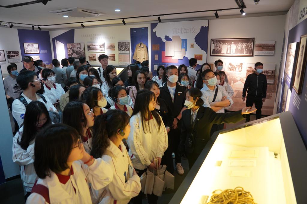 结束展览讲解后,思政宣传队伍师生还逐个参观了按照原有面貌尺度复原的黄埔军校校本部,看到了重建的教室、办公室以及饭堂、宿舍等学生生活区域,亲身感受黄埔军校“亲爱精诚”的校训和纪律严明的作风。