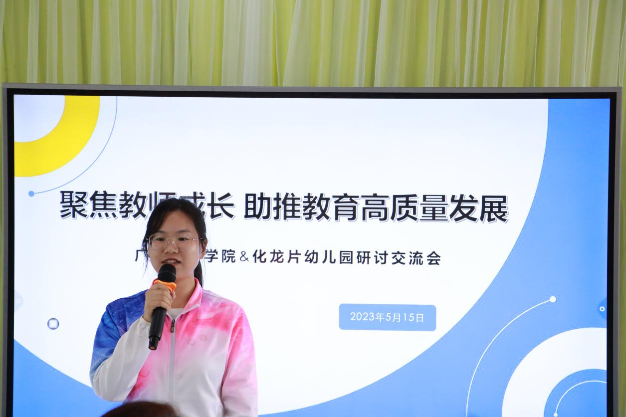 随后,校企双方进行研讨交流。教师教育学院与化龙片区幼儿园就联合培养人才、实施产教融合、共建实习就业基地、拓展就业岗位等方面进行交流探讨。