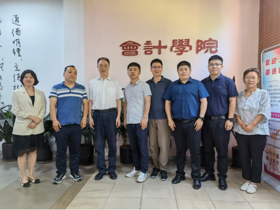 郭德兵主任肯定了会计学院在一流专业建设、实践教学体系搭建、教学实验区建设、产业学院建设、实验室建设、办学特色等方面取得的办学成效。最后,双方合影留念。
