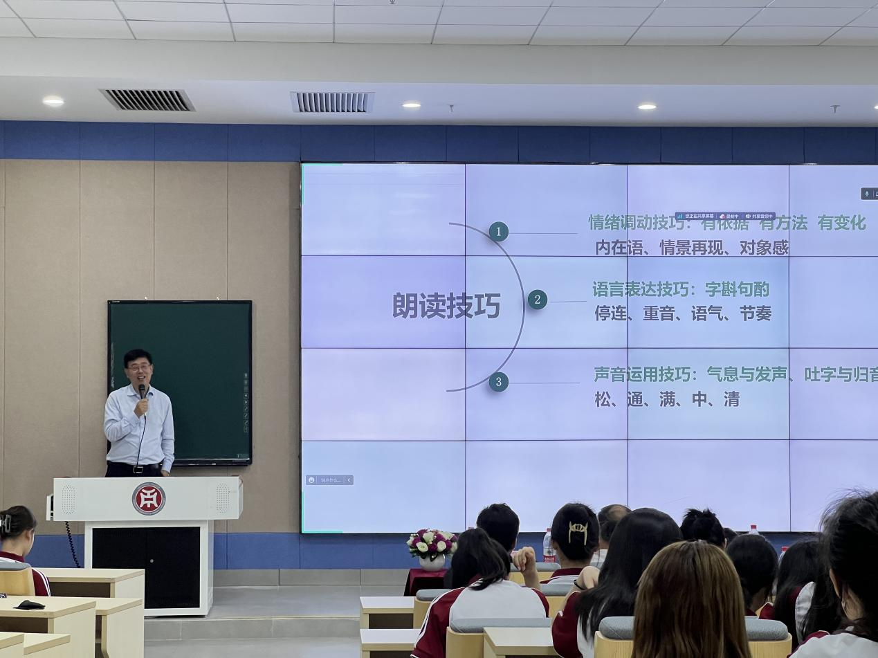 朗读是一门艺术,更是语文课程不可或缺一部分。为加强教师教育学院学子们对义务教育语文课程核心素养的认识,2023年6月1日晚上,教师教育学院邀请了何山老师在四会校区8号楼109举办讲座。莅临本次讲座的嘉宾有珠海市金湾区第二小学教育集团李彩芳总校长、小学教育专业负责人李志厚教授、王婧琪老师、四会校区党委委员、教师教育学院辅导员江庆基老师、小学教育系专任老师赵中宝老师、教师教育学院专任教师刘东伟老师、高婕老师、教师教育学院专任教师助教陈文玲老师,本次讲座的主讲人为珠海广电传媒控股有限公司副总经理何山老师,讲座由李志厚教授主持,教师教育学院2022级学生参加此次讲座。