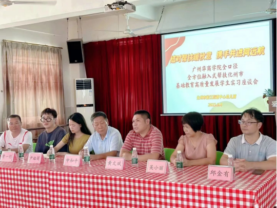 9月4日中午,教院学子在申和平教授、尹娅娟老师和曹一彤老师的带队下,平安抵达化州市。并于当天下午,在化州市鉴江街道中心幼儿园召开了伟德体育全口径全方位融入式帮扶化州市基础教育高质量发展学生实习座谈会。化州市教育局领导、平定镇中心幼儿园尤福南园长、化州市鉴江街道中心幼儿园吴小丽园长、教师教育学院带队老师以及各位实习生们出席了本次座谈会。