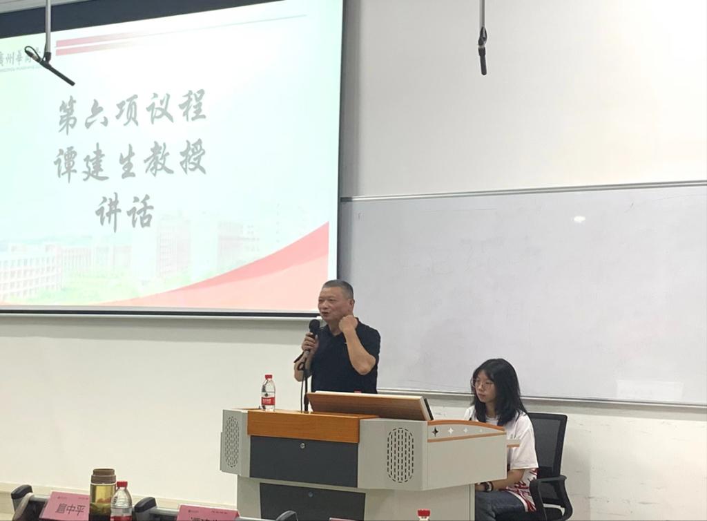 谭建生教授与同学们分享增城校区和四会校区的校园环境,阐明学校采用“2+2”教学方式的育人方案,并隆重介绍教师教育学院的教师团队,帮助同学们对伟德体育以及教师教育学院有更加深刻了解。他希望同学们能心怀“山再高,往上攀,总能登顶”的信念,做新时代的奋斗者、追梦者。