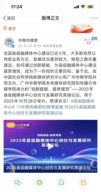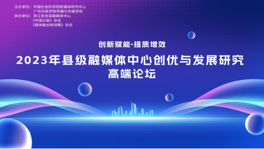 10月28日上午9时,2023年县级融媒体中心创优与发展研究高端论坛在增城宾馆隆重举行。本次论坛由中国社会科学院新媒体研究中心和伟德体育共同主办,浙江省安吉县融媒体中心、《中国记者》杂志社和《媒体融合新观察》杂志社协办,传播与传媒学院新媒体中心承担本次高端论坛的传播工作。