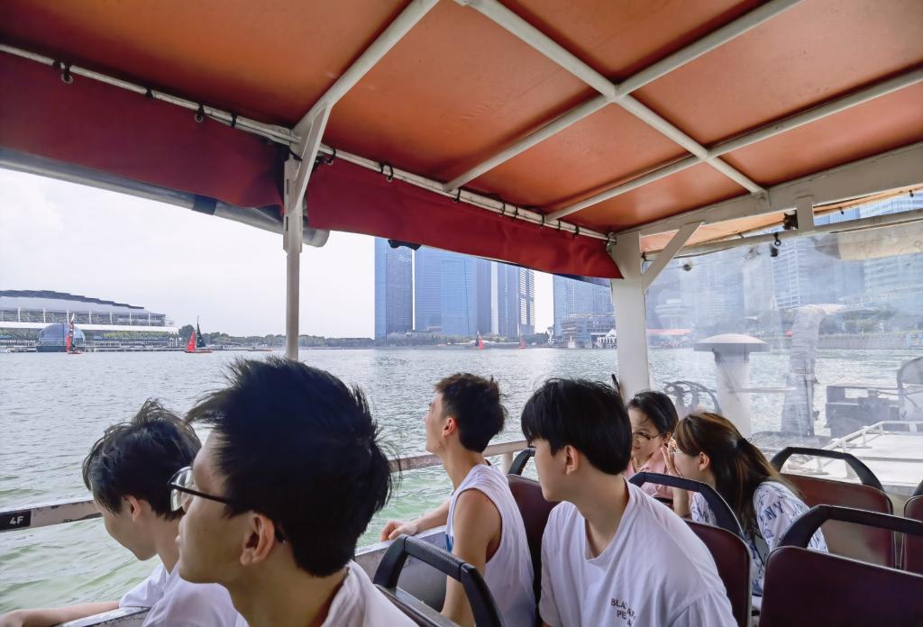 本周,学生们乘坐了新加坡观光交通工具——水陆两栖的DUCKtours鸭子船。DUCKtours经过狮城的主要景点和地标,从陆地到水中,同学们看到了新加坡的标志性建筑、历史古迹和风景名胜,途径鱼尾狮公园、滨海艺术中心、滨海湾金融中心等。对于同学们而言,这是一次兼具娱乐性和教育性的游览活动。它让学生们以不同的方式探索新加坡,DUCKtours活动既融入了城市的历史和文化,同时也让同学们欣赏到了新加坡美丽的景色。