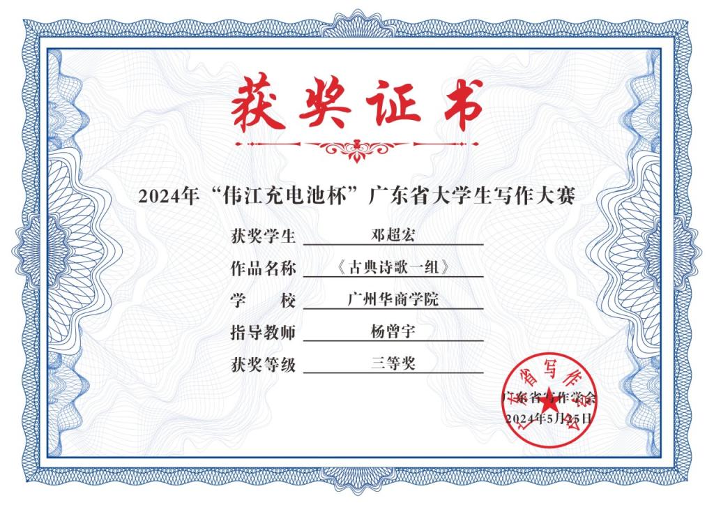 为推动广东省写作学科的发展和繁荣,广东省写作学会组织开展了2024年广东省大学生写作大赛。大赛设置了应用文写作和创意写作两类赛道,并分设一、二、三等奖。