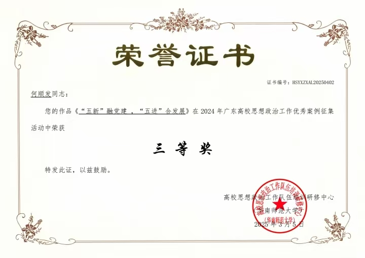 何顺发同志的工作案例《“五新”融党建,“五进”合发展》,旨在通过党建引领,稳中求进,守正创新,推动学院事业实现高质量发展。张艳娥同志的工作案例《构建全方位支持系统,助力学生全面成长》剖析构建全方位支持系统对学生成长成才的重要意义。张超、何顺发、杨明同志的论文《人工智能责任感知对大学生未来意志行动的影响:危机知觉和委婉标签链式中介效应》深入探讨人工智能技术与大学生职业规划的关系,为大学生就业工作提供新的理论依据。何顺发同志的论文《新时代民办高校党建与教育事业发展深度融合路径探究》详细分析新时代民办高校党建与教育事业发展的现状与挑战,阐述两者深度融合的理论基础,并结合高校的案例与经验,探讨实现两者深度融合的有效路径。