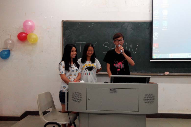 随后在游戏“Who is spy?”中,同学们群情激昂,踊跃参与,将活动推到了高潮。紧接着是分组主题交流,本次交流主题为“TV Show”,同学们用英语争相发言。最后,Tom对大家的发言做了简短的点评,鼓励同学们认真学好英语,并对表现最为优秀的小组进行了颁奖。