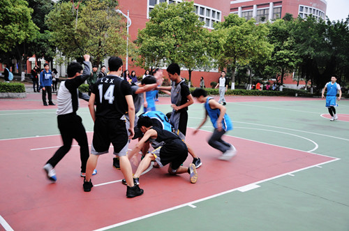 上星期的篮球赛更是让同学们大饱眼福。在12国贸3班对决13统计班的比赛中,一开场12国贸3班队员们的强大气势让对方不知所措,阵脚大乱。场上篮球健儿们气势如虹,场下的啦啦队也不甘落后,只听战鼓隆隆,呐喊声、加油声阵阵,仿佛要震开天上厚厚的云层,这些加油呐喊是队员们的强心剂,在啦啦队的呐喊声中,在咚咚的战鼓声中,在12国贸3班队员们强大的攻势下,12国贸3班最终取得了胜利。