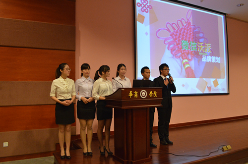 本报讯(记者 袁艺峻)华商学院首届品牌策划大赛于2013年12月17日在华商学院隆重举行。此次大赛旨在通过技能大赛的导向功能,以赛促学,进一步引导和促进我们教学改革,营造良好的校园文化氛围,全面提升专业人才培养质量。此次比赛特邀请了丘兆福副院长,李建浔主任,姚学正副主任及工商管理系全体教职工参加。