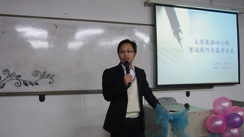 英语四六级讲座于2013年11月29日晚上19:00在创新楼201如期举行。很荣幸邀请到外语系教师吴峰松老师来为我们讲授。