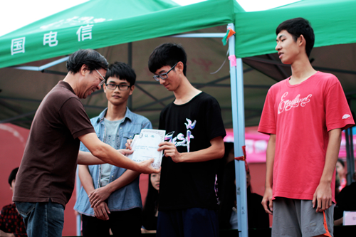 闭幕式开始前,各个班的运动员们早已整齐有序地排列在主席台前,观众席上也坐满了比赛时为运动员们欢呼呐喊的同学们。整个闭幕式现场充斥着欢声笑语。伴随着主持人悦耳的开场白,闭幕式正式开始。主持人与运动员的互动以及艺术团声乐队队员的歌唱表演结束后,接着进入闭幕式的高潮——颁奖环节!一个个获奖运动员在大家的尖叫声、欢呼声与热烈的掌声中走上了主席台,从颁奖嘉宾的手中接过奖状并与颁奖嘉宾合影留念,运动员们为班争光自豪,幸福的表情一一被记录在镜头下。最后,闭幕式在王德高主任的致辞下圆满落下了帷幕。