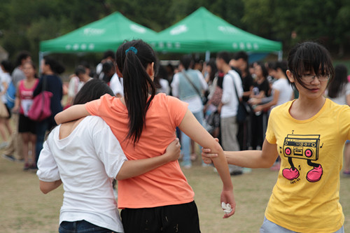 同学们陪伴着运动员们一起战斗
