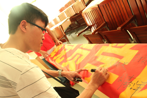 最后,出席倡议会的嘉宾和全体党员签名表决心,将以实际行动投入到“三风”建设任务中,积极树立“校荣我荣,校辱我辱”的意识,在实践中努力完善和提高自我。