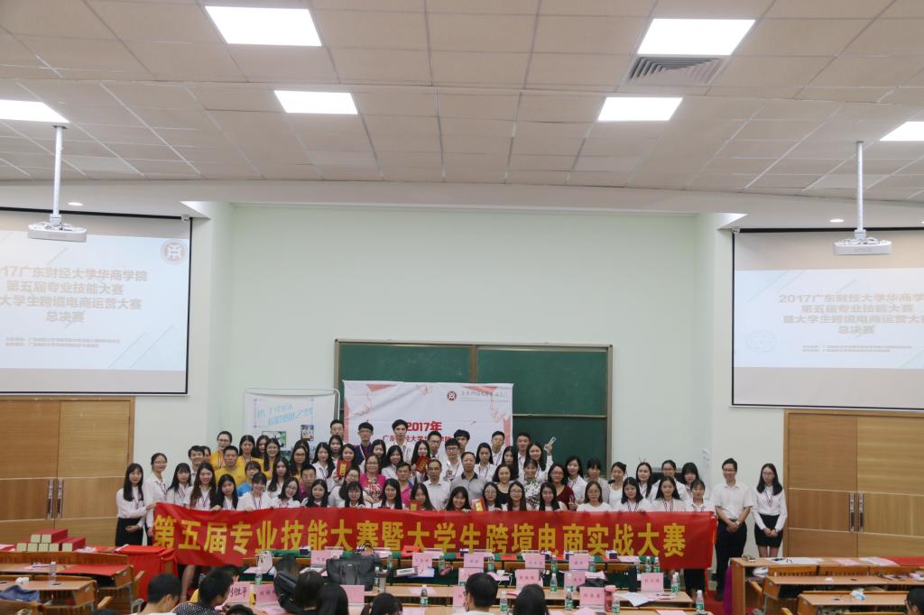 不忘初心,携手电商,圆创业之梦。经济与金融系于2017年9月26日14:30在励志楼D208举行了第五届专业技能大赛暨大学生跨境电商实战大赛总决赛。莅临本次大赛的嘉宾有广东财经大学华商学院郭银华副院长,经济与金融系王德高主任、张真副主任、邱会锋副主任,教务处实践科陈宏敏科长,经济管理学院办公室王海燕主任,贝斯特电子科技有限公司企业代表涂总,广州市津冠纸品有限公司企业代表严总,广州市毅盟硅橡胶科技有限公司企业代表周总,广州市增城科栎达塑料制品厂企业代表唐总,彤鑫电商产业园有限公司企业代表夏总监,广州市正茂印刷有限公司企业代表倪经理。