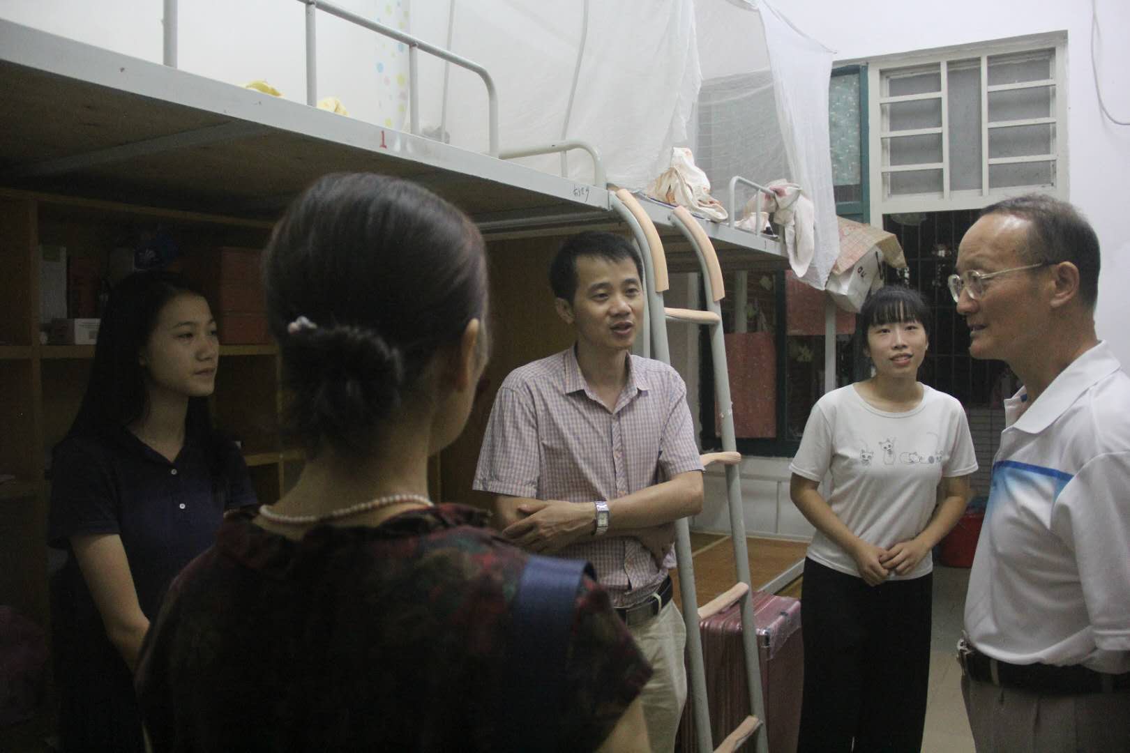 走访宿舍的过程中,我系领导和老师深入的了解新生的各方面的情况,亲切地与新生们交谈,耐心地向他们介绍学校的基本情况,同时也解答新生提出的一些问题,询问他们是否还习惯学校的生活。我系领导和老师鼓励同学们要尽快熟悉校园环境,在校园里要保管好自己的财物,注意宿舍用电安全,并且嘱咐新生要认真学习知识。除此之外充实大学生活也非常重要,认真学习的同时积极培养兴趣爱好。