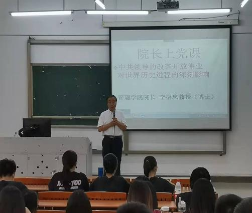 为响应“关于做好2022年春季第二学期学院党组织书记、院长上第一堂思政课”的号召,深入贯彻中办、国办印发的《关于深化新时代学校思想政治理论课改革创新的若干意见》精神,3月21日下午,管理学院院长李招忠教授于励志楼C401为我们学生开展了以“中共领导的改革开放伟业对世界历史进程的深刻影响”为主题的思想政治教育专题课。